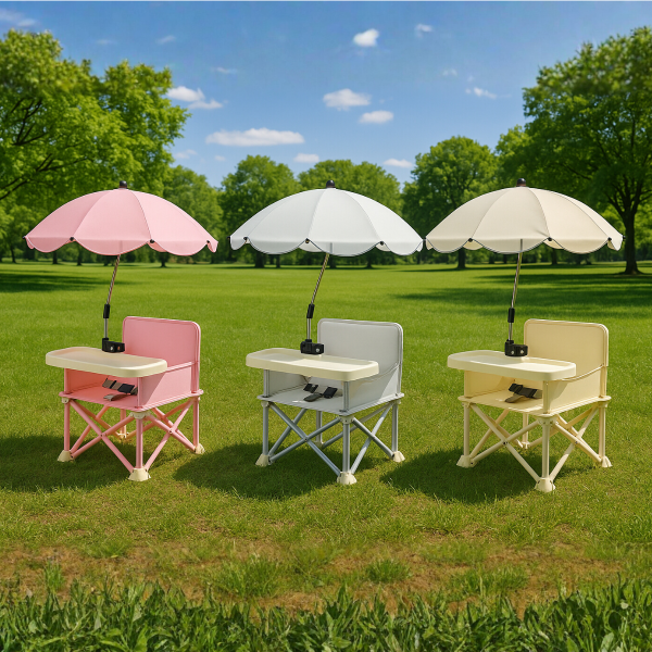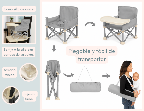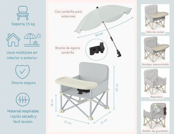 SILLA INFANTIL PLEGABLE CON BANDEJA Y SOMBRILLA.