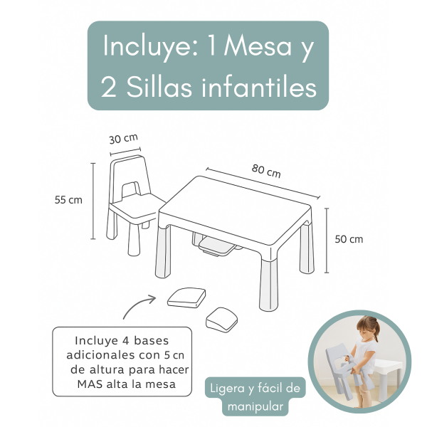 Ideal para dibujar, leer, comer y realizar todo tipo de actividades